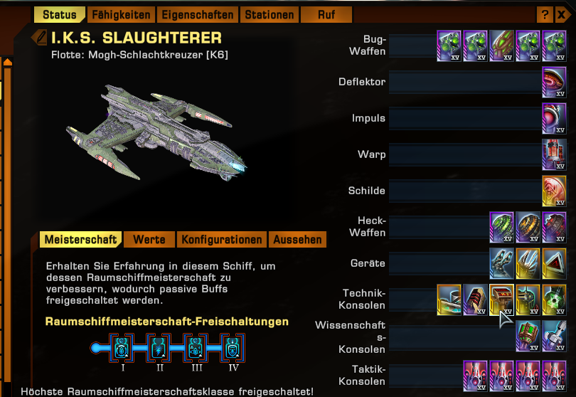 Guten Mittag zusammen, mal wieder ein Schiffslayout von mir. Ich würde mich über Anregungen und Verbesserungsvorschläge freuen. Gruß Kurn@Specht138 Mogh_Schlachtkreuzer_Fähigkeitenverteilung_Char.png Mogh_Schlachtkreuzer_Fähigkeitenverteilung_Cmdr_Cpt..png Mogh_Schlachtkreuzer_Fähigkeitenverteilung_G ...