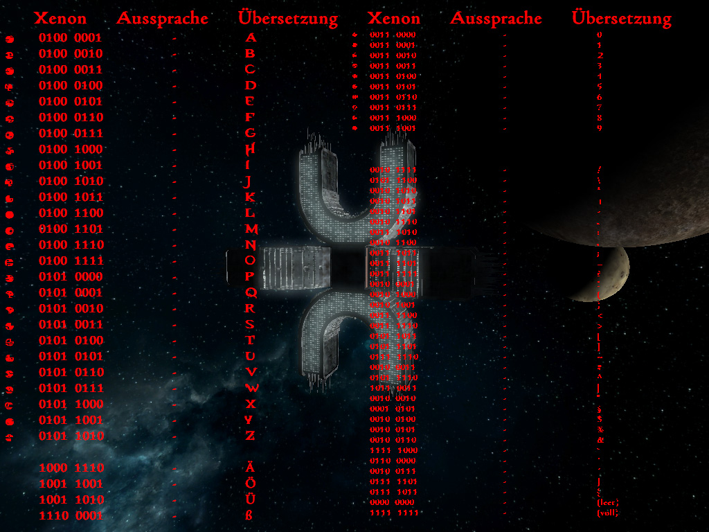 Ich hab in einem Archiv noch die Sprachen der X-Völker gefunden. Das ist allerdings nicht offiziell, sondern war damals nur Fanwork. Leider befindet sich der Autor nicht mehr im Besitz der Font-Dateien, so dass ich sie hier leider nicht zum Download anbieten kann.