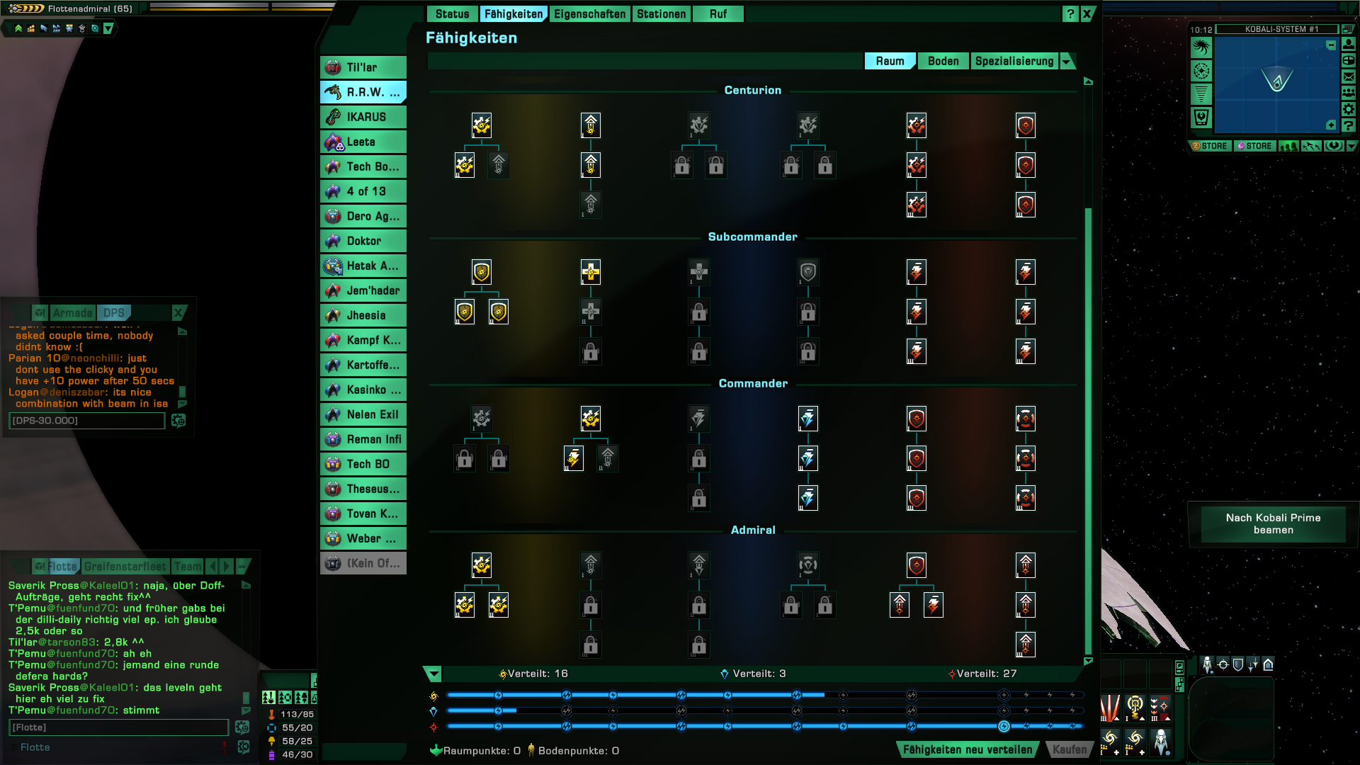 Flottenkoordinator, Selbst modulierendes Waffenfeuer, Umgeleitete Hüllen Panzerung.