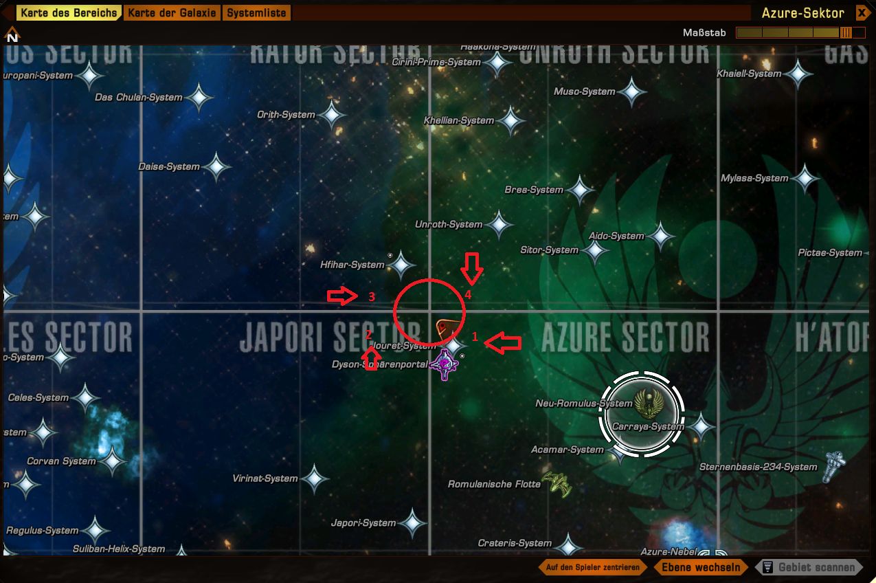 Dann Fliegt ihr zu Einem Sektoren 4 Eck möglichst bei der Föderation oder den Romulanern