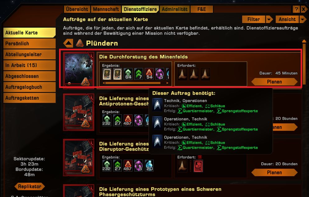 Besorgt euch wenn möglich einige Dienstoffizierspakete um mehr Aufträge annehmen zu können!
