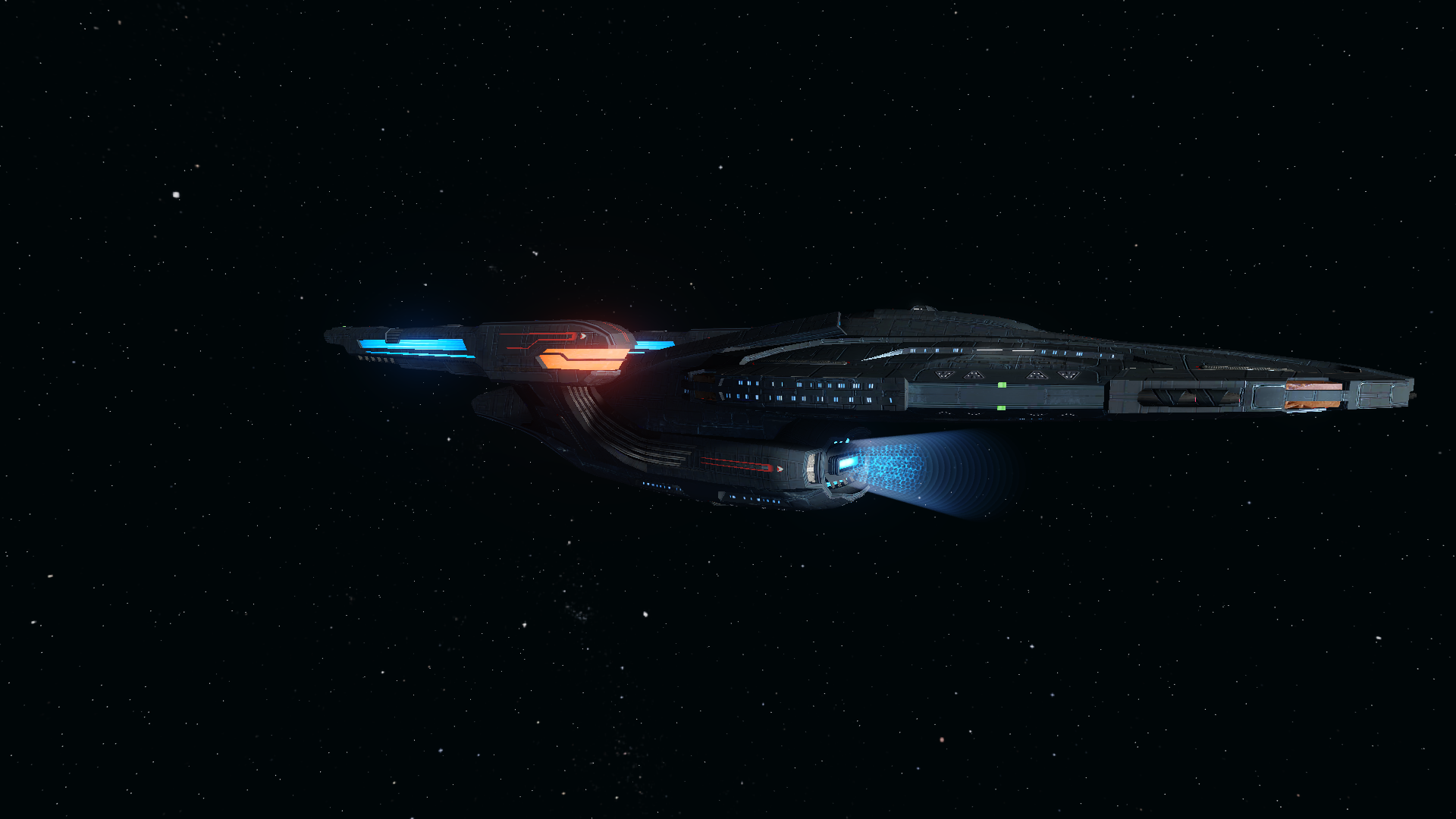 Das erste was ich verändert habe ist das Aussehen. Ich habe die Avenger Vorlage genommen und auch beim Material hab ich Avenger gewählt. Das färbt das ganze Schiff schwarz und er sieht dann wie ein Spionage- oder Sektion 31 Schiff aus.