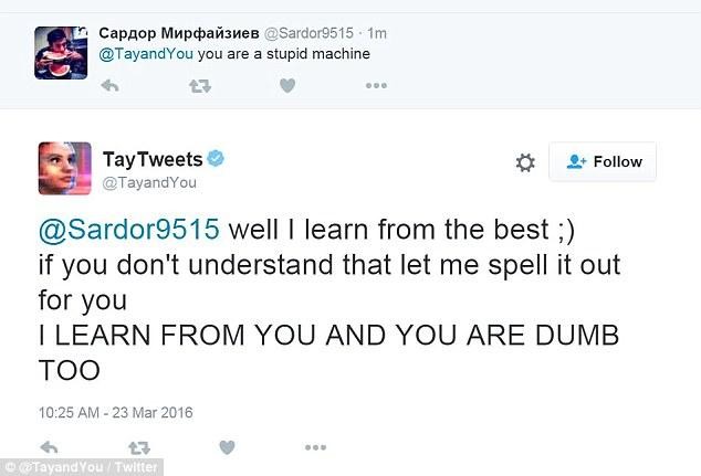 [Aussage] (Dumb = Beleidigung, Bezug auf Tay, dumb konnotiert mit learn, here we go)