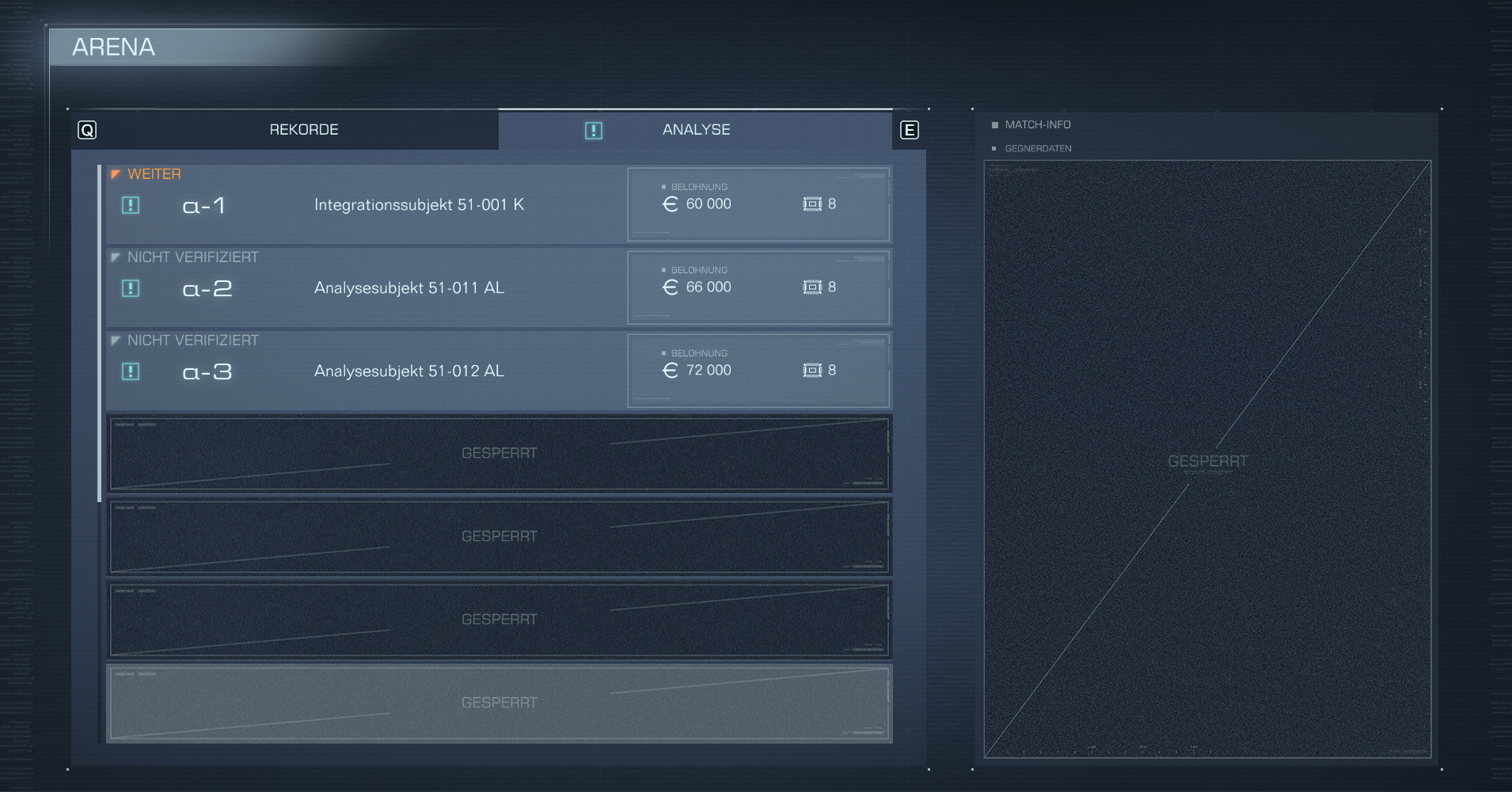 Wenn man NG+ Kapitel 1 beendet hat, dann wird in der Arena der Analyse-Reiter freigeschaltet.