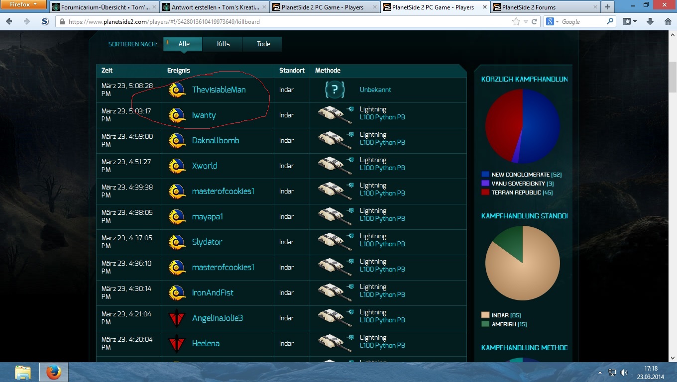Yo, hatte heute tatsächlich mal nen ganz guten Run mit einigen Kills. Vlt. krieg ich auch nur langsam raus wie ich an die Gefechte ran gehn und worauf ich achten muss. Vlt. liegt mir auch nur die rote Fraktion (Name vergessen