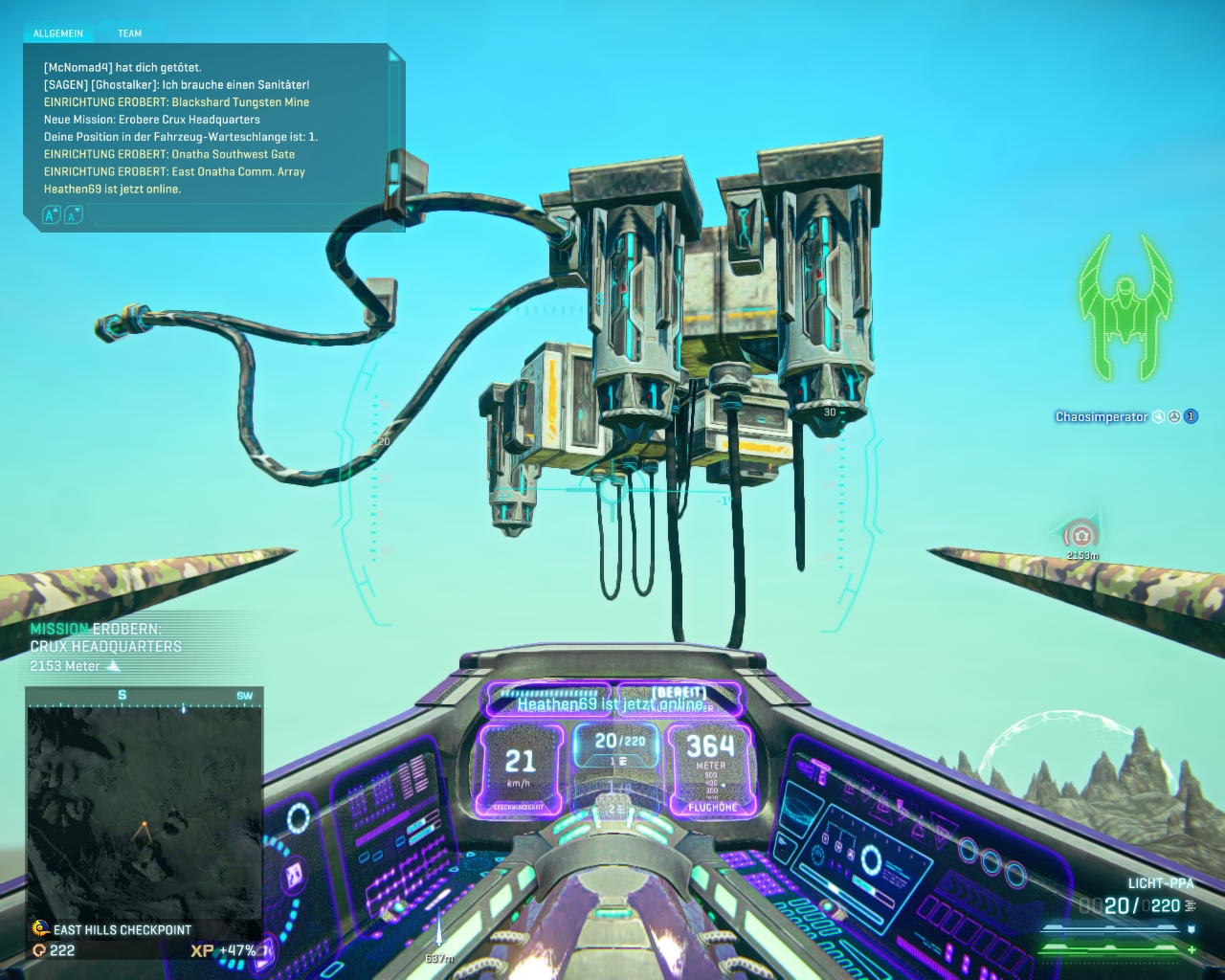 Ich bin mal als Sniper von dem Ding zerlegt worden :D . Ist schon ein interessantes Ding, auch wenn der Pilot keine Schwierigkeit hatte mich zu killen (hab den Ignoriert und ein paar Leute in der Feindbasis beschossen :roll: ).