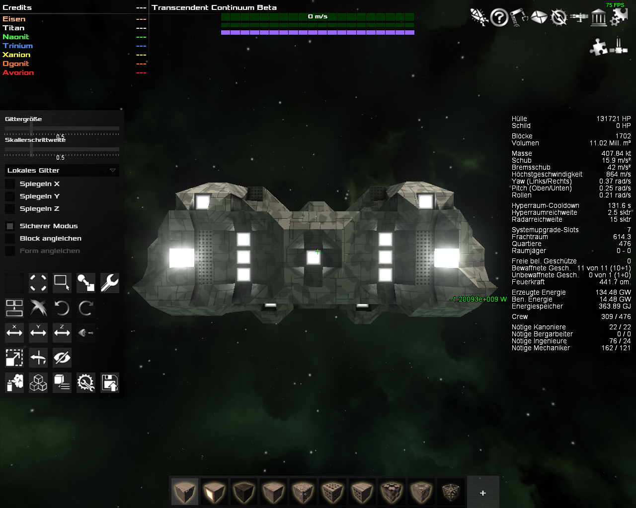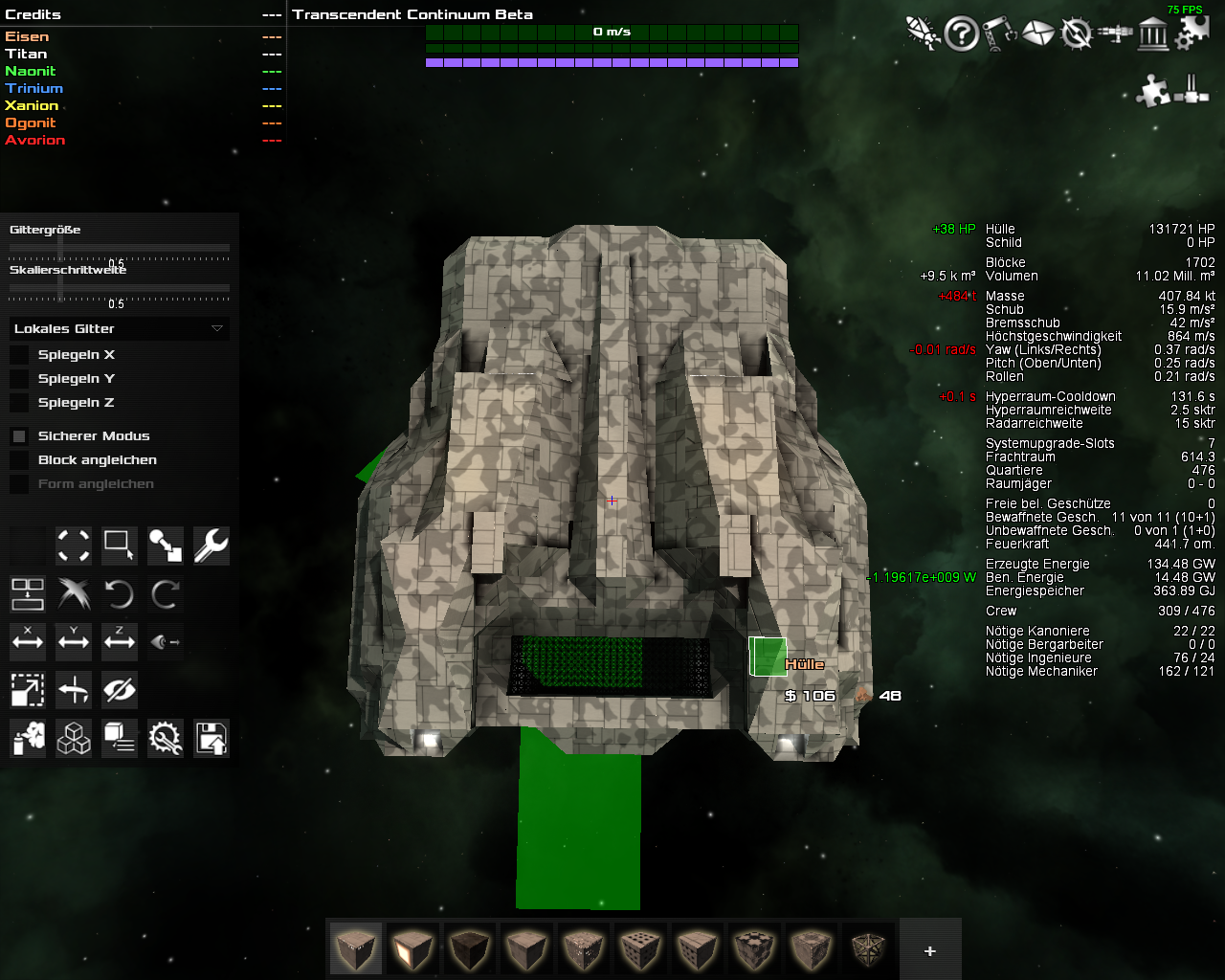 Voll Variablem Schiffsdesign / baufeature "ala Minecraft" wo man Blöcke mit eigenschaften zu einem Schiff zusammenschustert