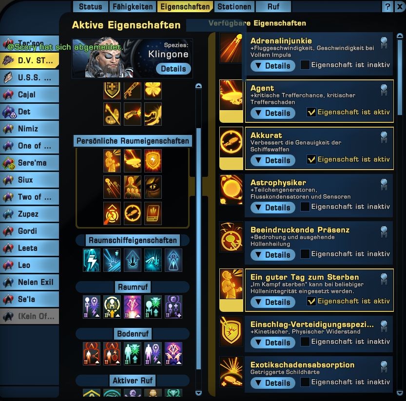 Es Gibt Persönliche Raumeigenschaften und Raumschiffeigenschaften die Kanonenschaden Generell Erhöhen oder die sich in Kombination als Sehr nützlich erwiesen haben.