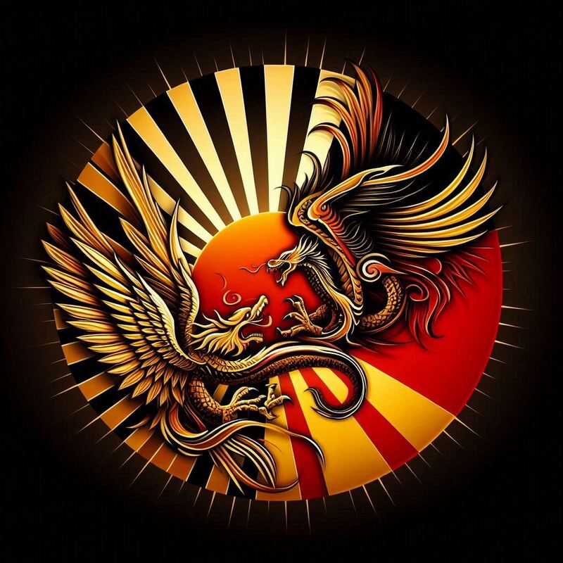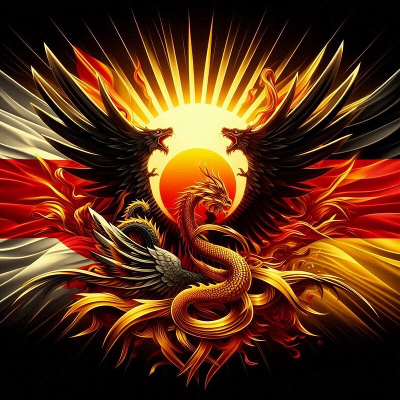 Ein paar Varianten einer deutsch-japanischen Misch-Flagge, generiert mit KI.