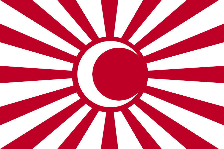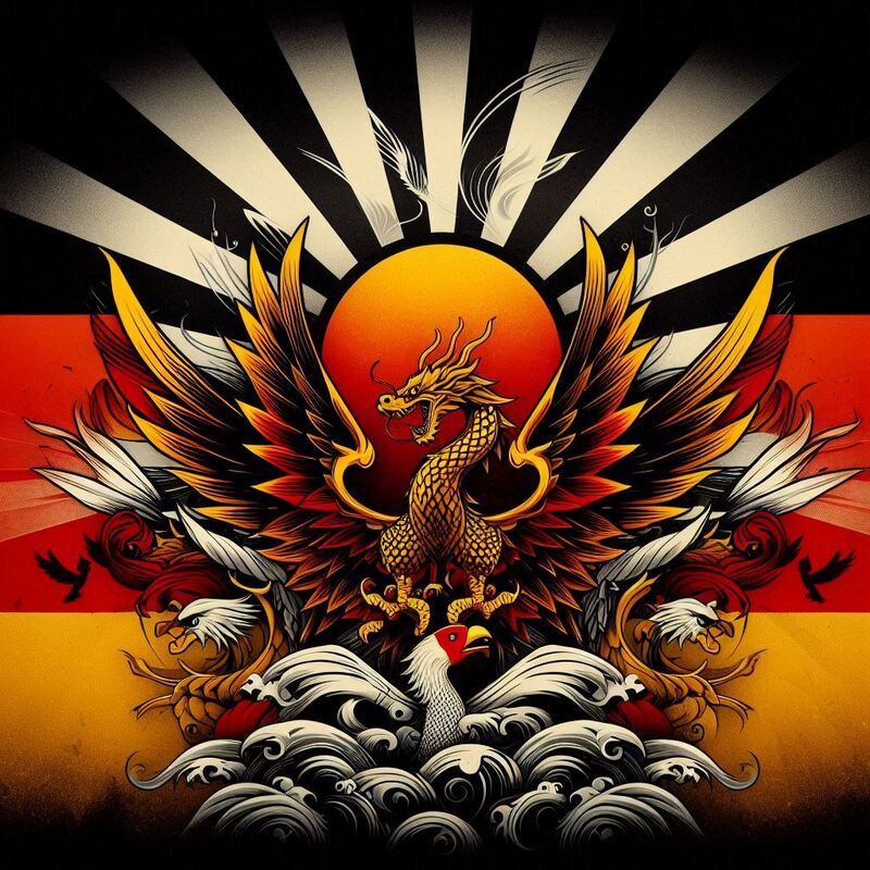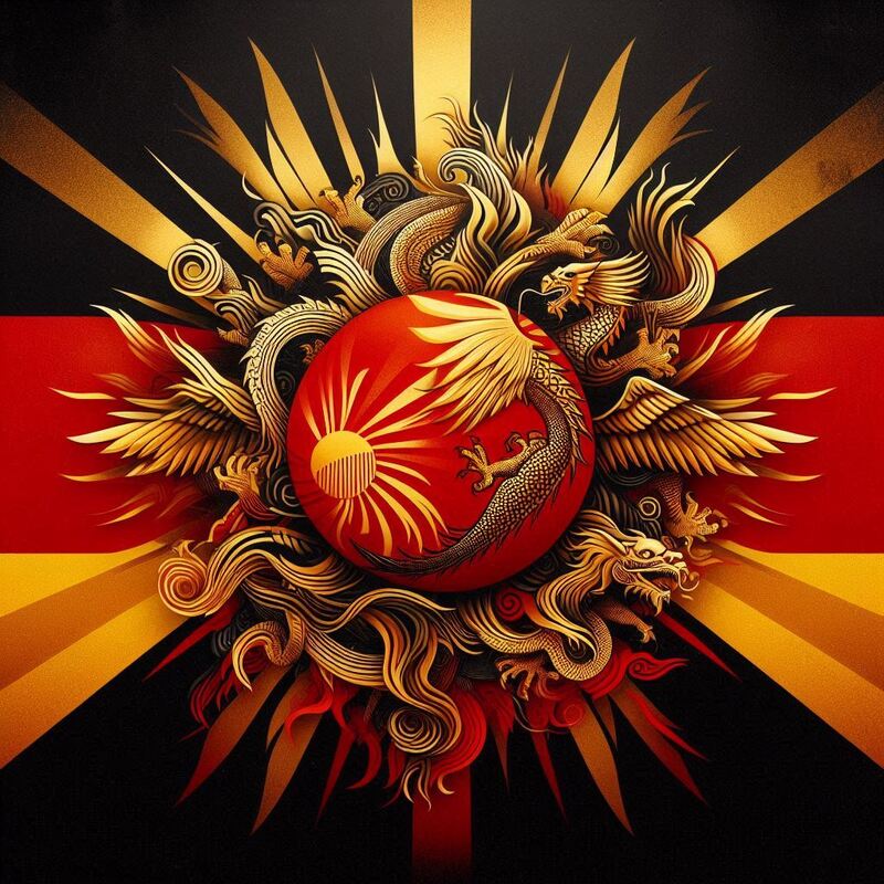 Ein paar Varianten einer deutsch-japanischen Misch-Flagge, generiert mit KI.