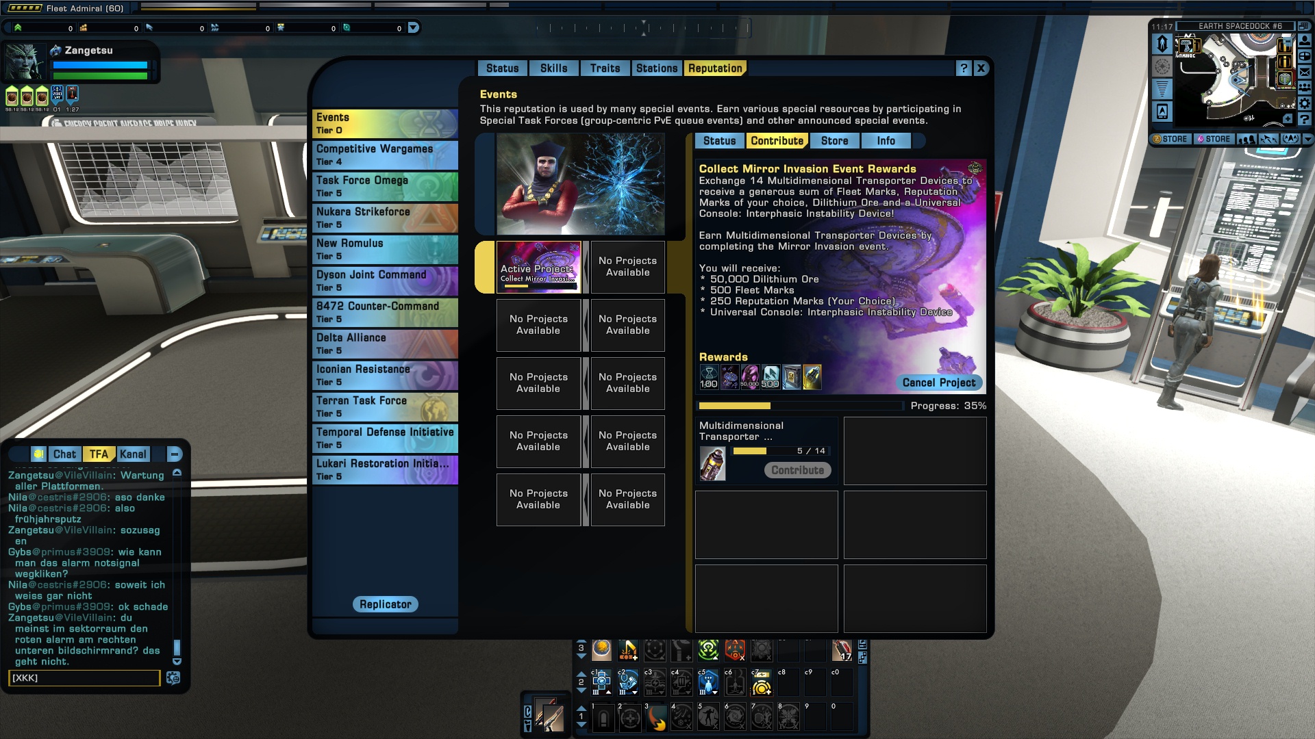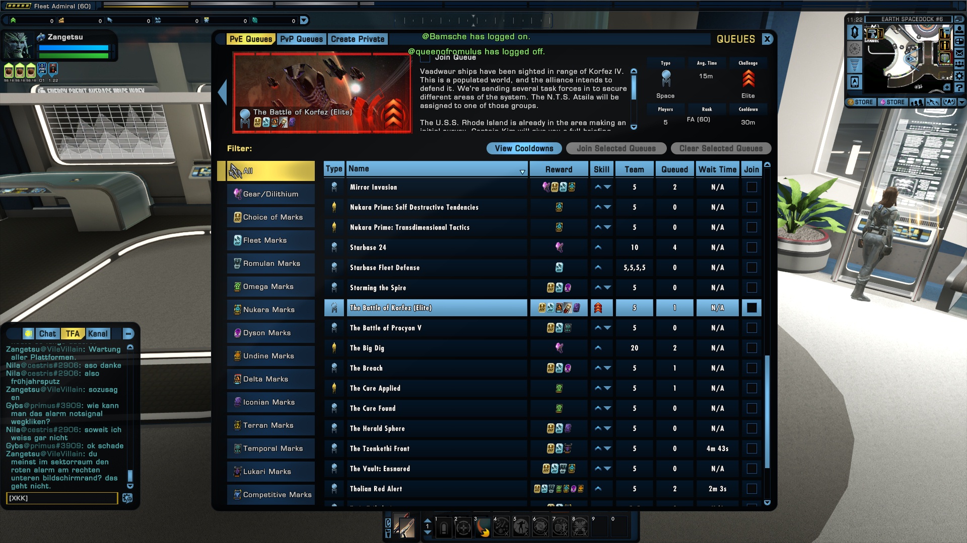Man kann auf der linken Seite bereits sehr schön die STFs filtern, je nach Marken. Allerdings gibt es je nach Kategorie nur ein Sonderitem. Wenn man zum Beispiel bei den Nukara-STFs etwas anderes auswählt als Belohnung (beispielsweise Flottenmarken oder Romulanrmarken), dann bekommt man trotzdem nur das Sonderitem für den Nukara-Ruf.
