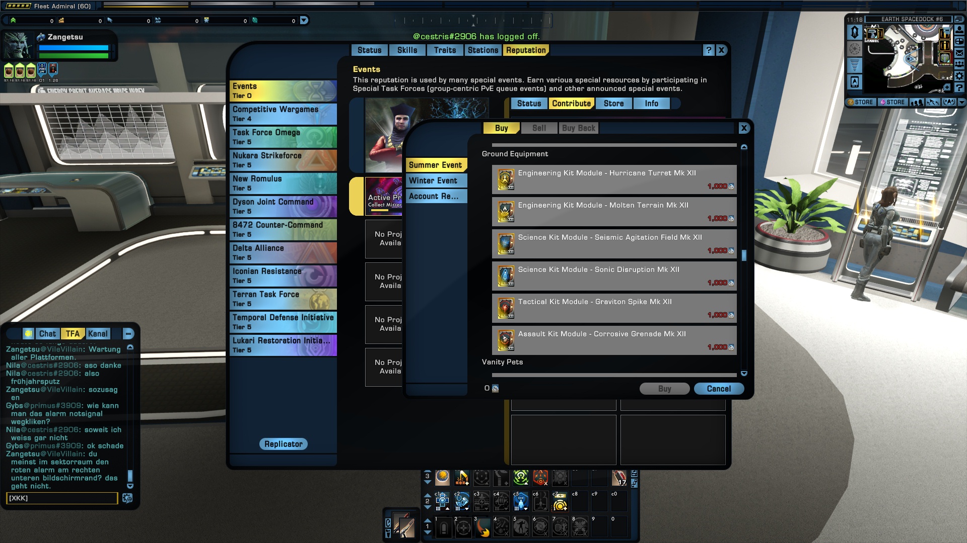 Neben den einzigartigen Items (meists Sets für Boden und Raum), hat jeder Ruf auch einen Shop, in dem es besondere Items gibt. Dies sind in der Regel Boden- und Raumwaffen, die man auch mehrfach ausrüsten kann.