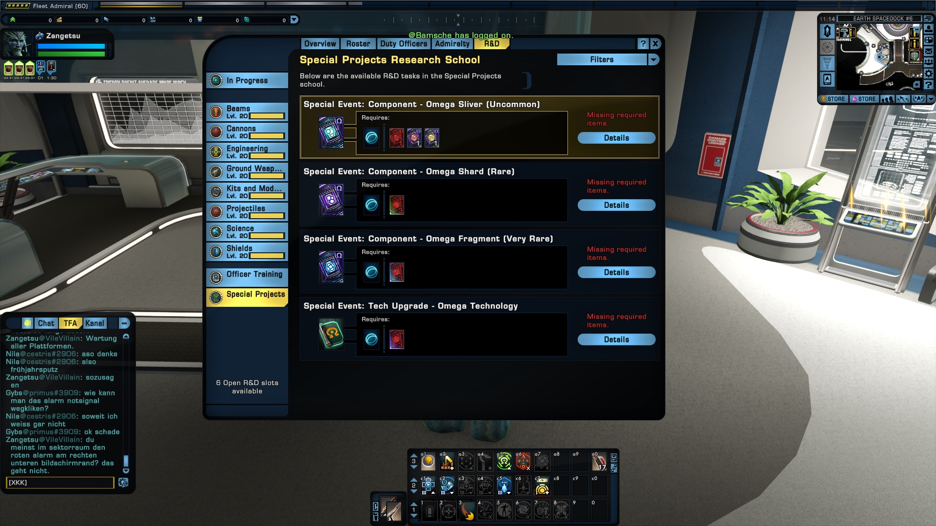Spezialprojekte wie das Omegaupgrade sind sehr selten. Die Materialen kann man nur während des Geburtstagsevents sammeln. Die Grundmaterialien rot, blau und gelb kann man an den Börsen (ver)kaufen, sind aber immens teuer.
