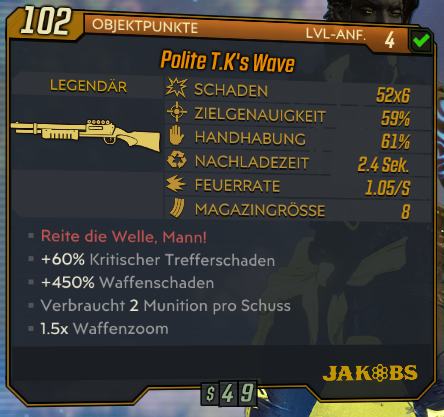 Borderlands 3 finde ich mäßig. Das Gameplay ist durchaus reizvoll, aber durch den Überfluss an Waffen bin ich viel zu oft am langweiligen Vergleichen von Statistiken. Da mag ich das System von z.B. Fallout: New Vegas sehr viel mehr, wo es zwar zahlreiche Waffen gibt, aber jede davon auch eine Daseinsberechtigung hat. In Borderlands 3 sind ~95% der Waffen einfach nur Spam.
