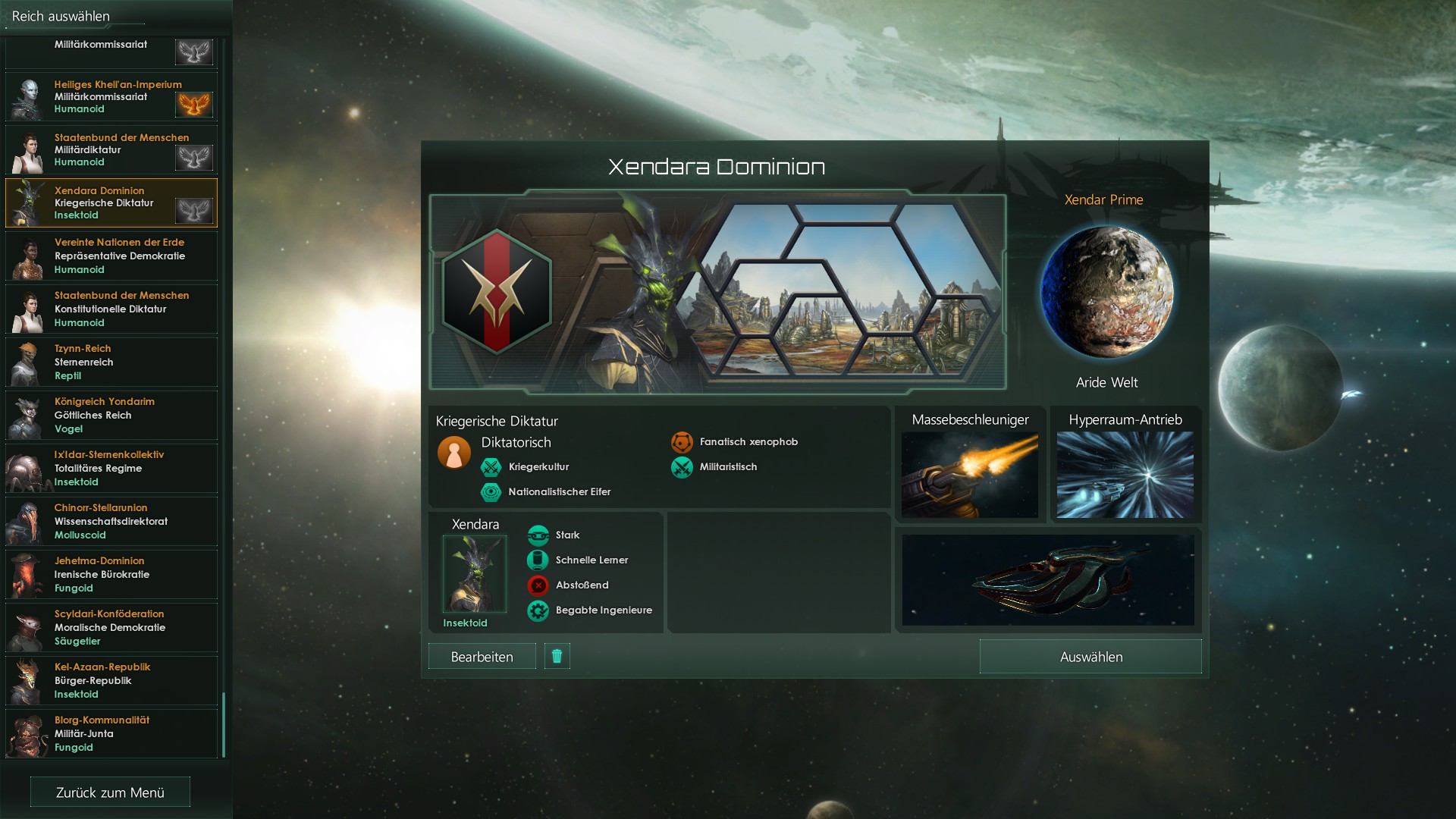 Ich persönlich spiele seit einiger Zeit immer mit meinem fanatisch xenophoben, militaristischen Insektenvolk
