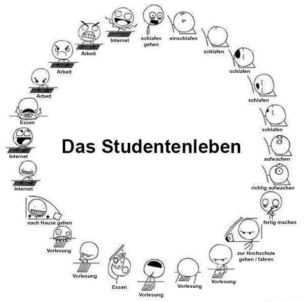Nachdem du damit durch bist, geht's auf die Uni. Du hast inzwischen genug Erfahrung, um das Stundentenleben in Saus und Braus zu genießen, nimmst Drogen, hast nix als Poppen im Kopf und säufst dir ständig die Hucke zu.