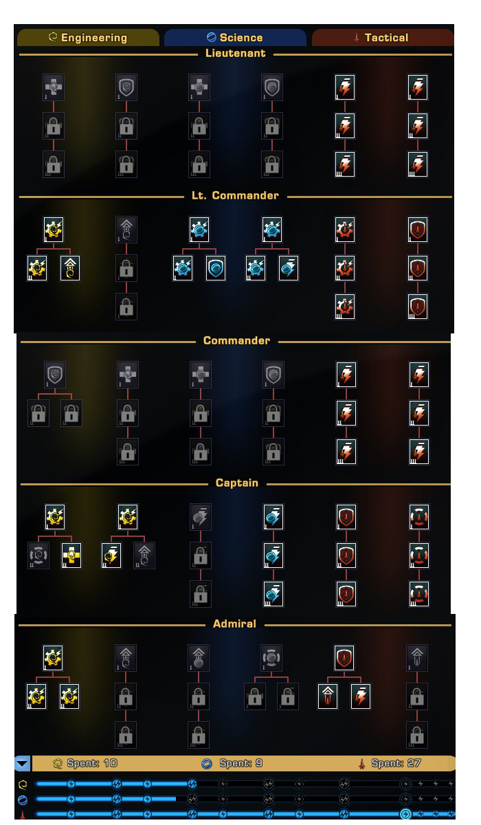 • Admiral: Scientific Readiness; verkürzt die Wiederaufladezeit eurer SCI Fähigkeiten, was darin endet, dass ihr sie öfters nutzen könnt.
