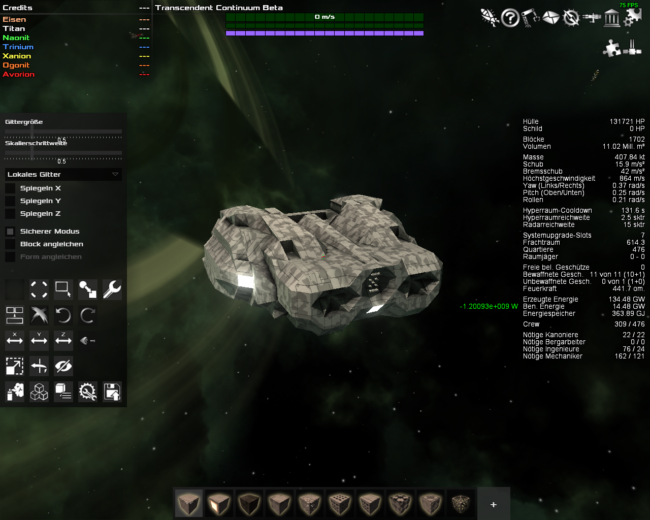 Voll Variablem Schiffsdesign / baufeature "ala Minecraft" wo man Blöcke mit eigenschaften zu einem Schiff zusammenschustert